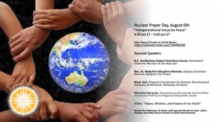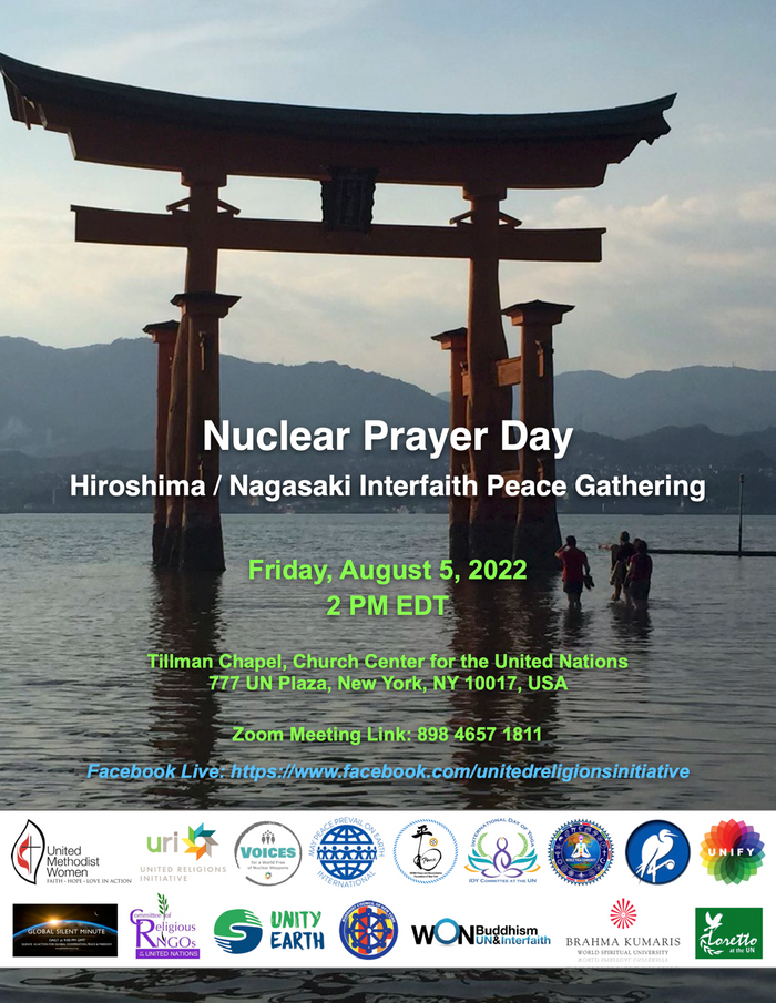 Nuclear Prayer Day initiated by URI - Voices for a World Free of Nuclear Weapons invites global citizens to send their prayers and invocations out to the world on August 6th in observance of the 77th year the first atomic bomb was dropped on the City of Hiroshima.