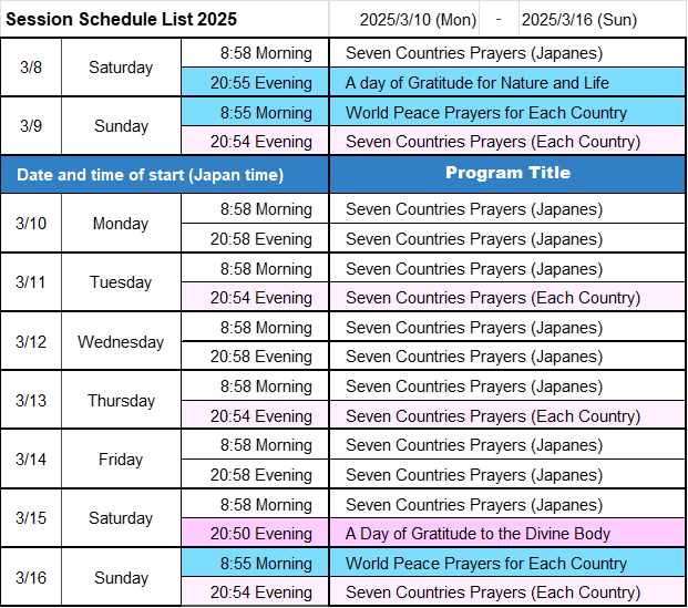- Regular program ➡ 8:54-8:58 in the morning and evening