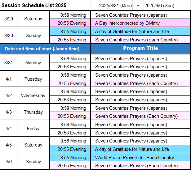 - Regular program ➡ 8:54-8:58 in the morning and evening
